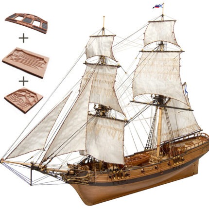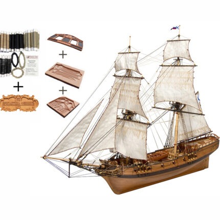 Набор комплектуется 8-вес рабочим катером 4-вес и 6-вес ялами, профессиональными элементами для такелажа.