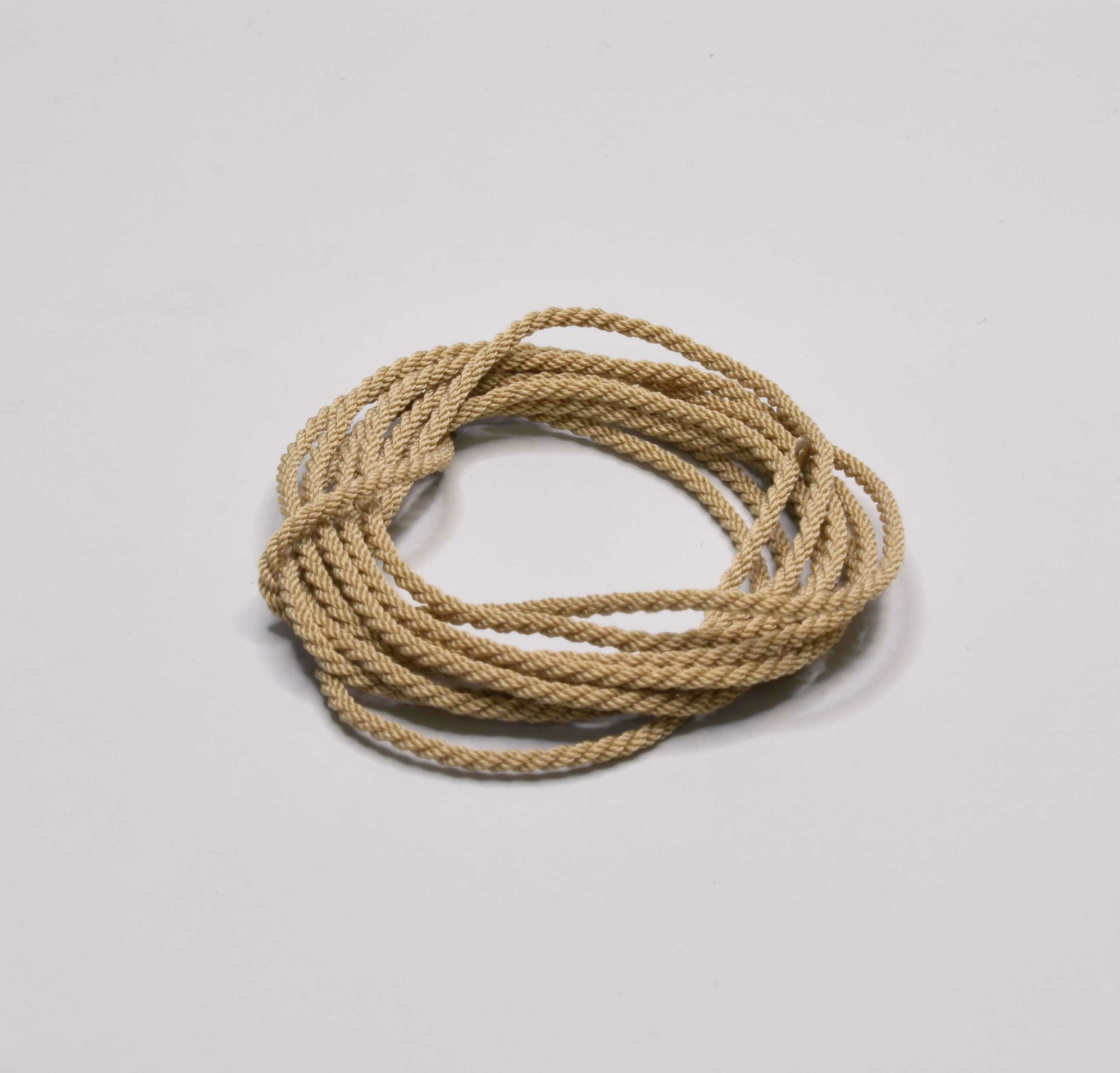 Выполнен методом кабельной свивки из трех стренд. Используется в качестве якорного каната на парусных судах. НЕ ВОРСИТСЯ !!!. Полностью имитирует цвет, форму и фактуру настоящего каната. Наши канаты, это идеальное решение для самых требовательных моделистов.