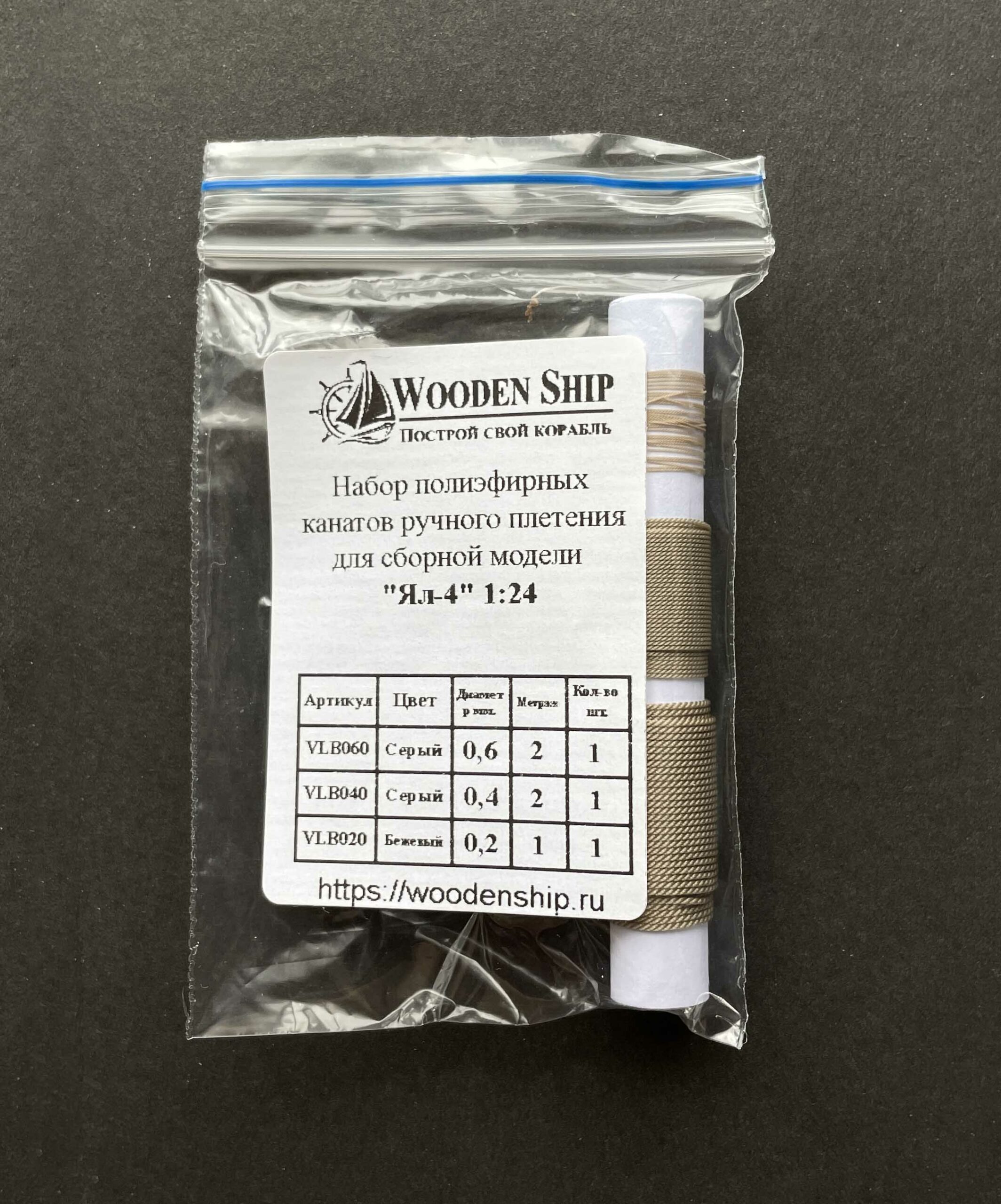 Набор высококачественных полиэфирных канатов ручной работы для сборной модели корабля «Ял-4» 1:24(Фальконет)