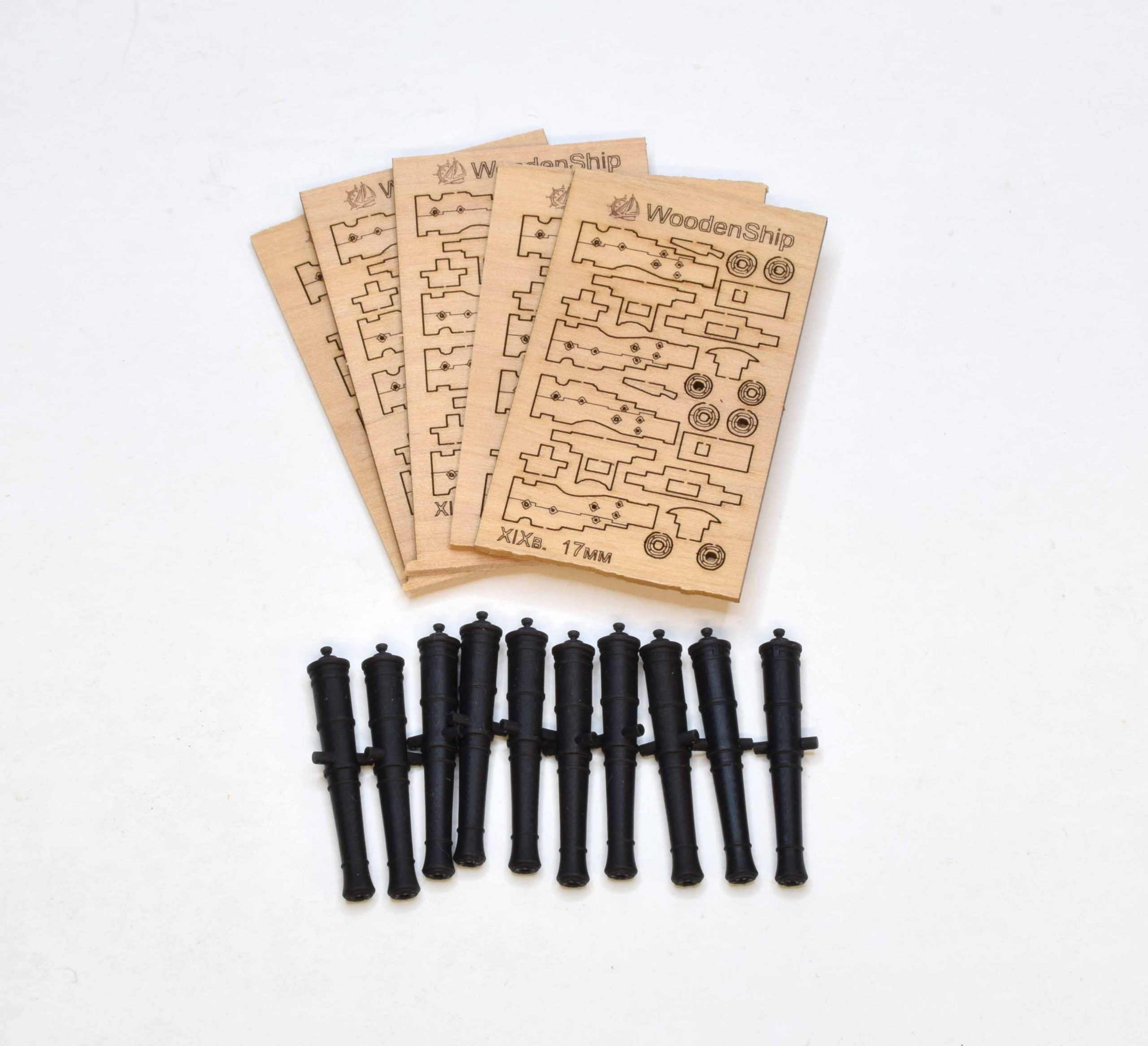 Набор для самостоятельной сборки 10 корабельных пушек, состоит из 5 пластин груши, толщиной 1.5мм. с вырезанными лазером деталями.