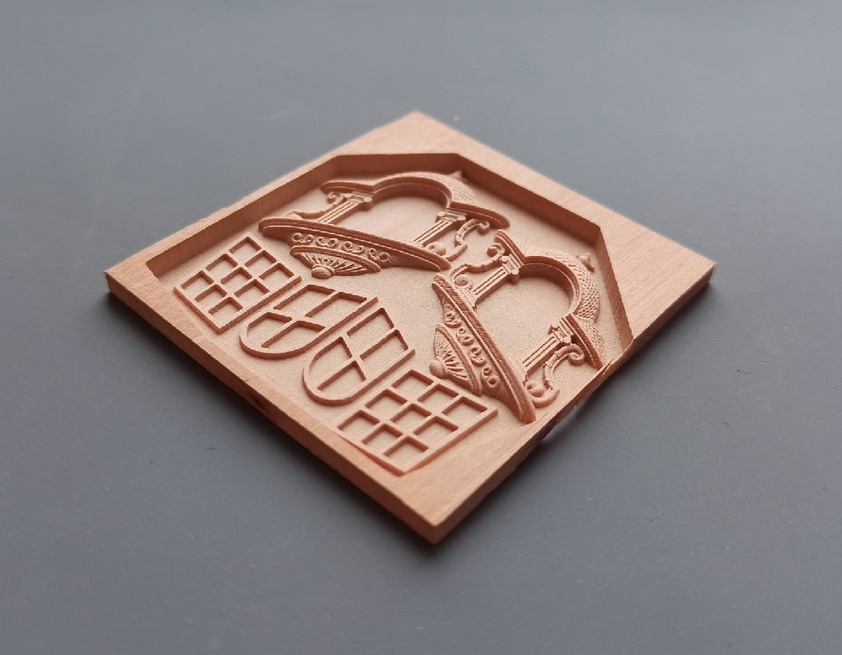 Изготовлен на станке с ЧПУ из розовой Груши. толщина подложки 0.2мм.