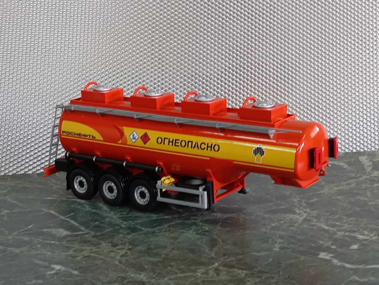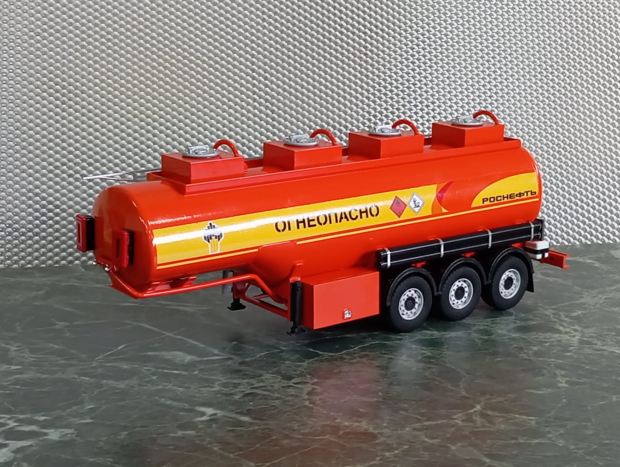 Полностью готовая модель 3-х осного полуприцепа бензовоза «Сеспель». Окраска «Роснефть»