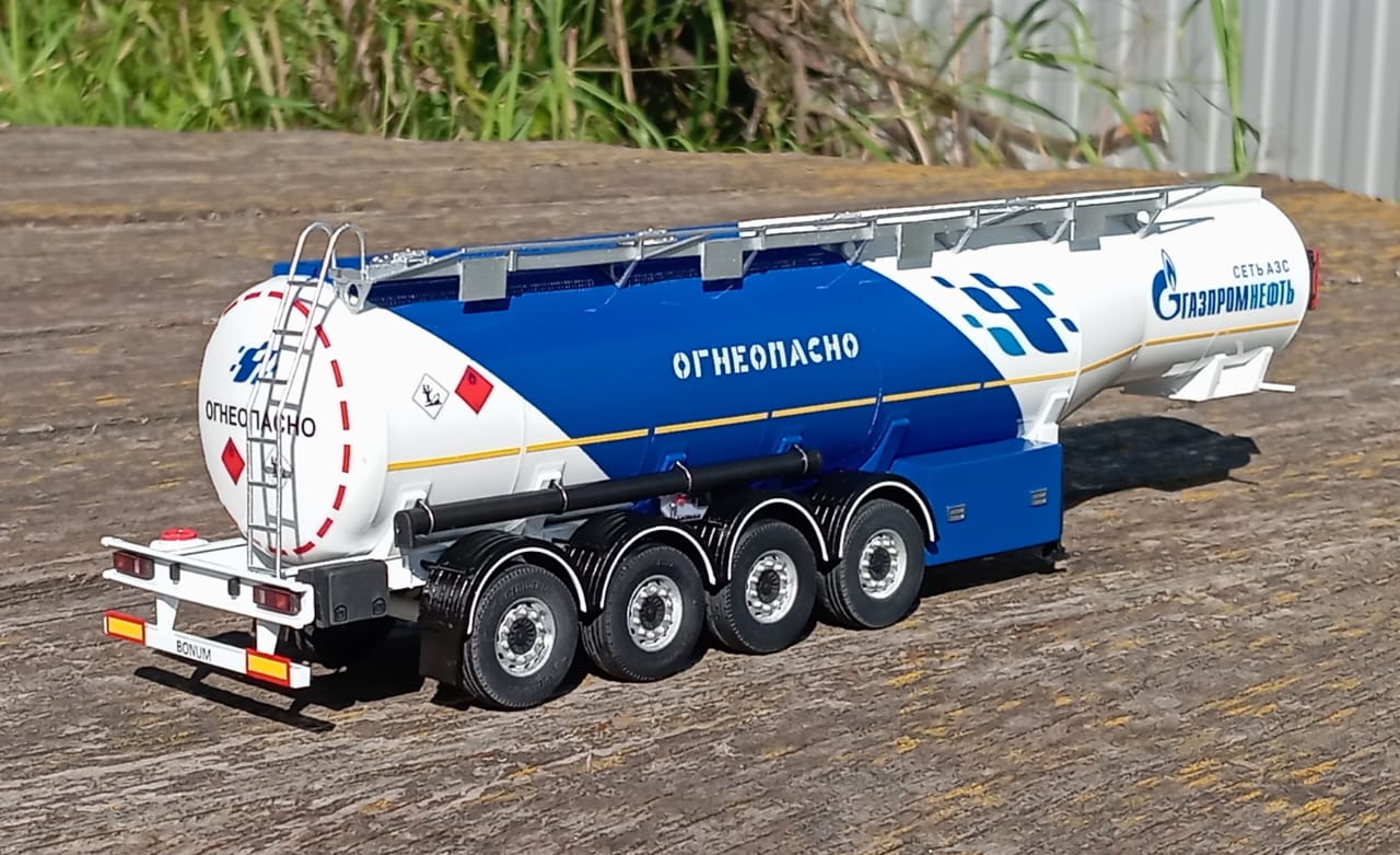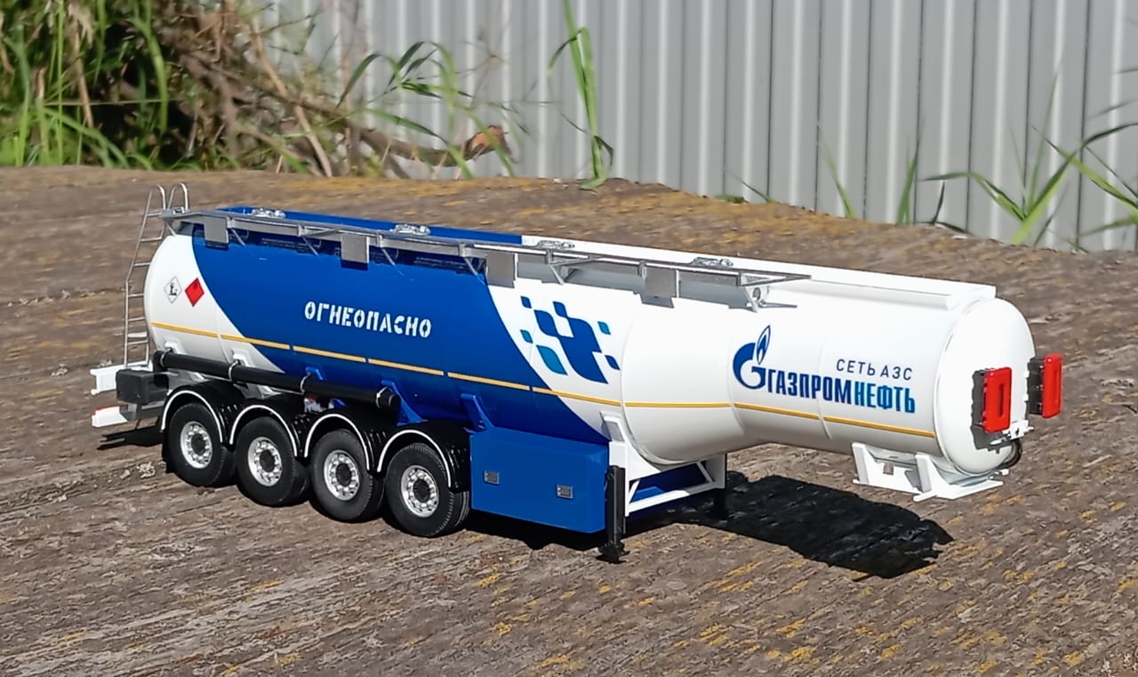 Полностью готовая модель 4-х осного полуприцепа бензовоза. Окраска «Газпром»