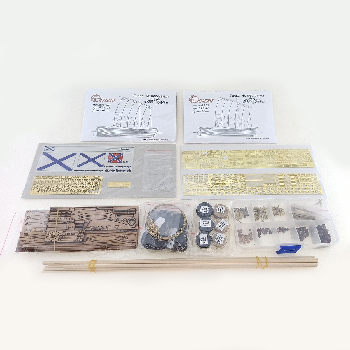 Набор комплектуется двумя 4х весельными гичками, профессиональными элементами для такелажа.
