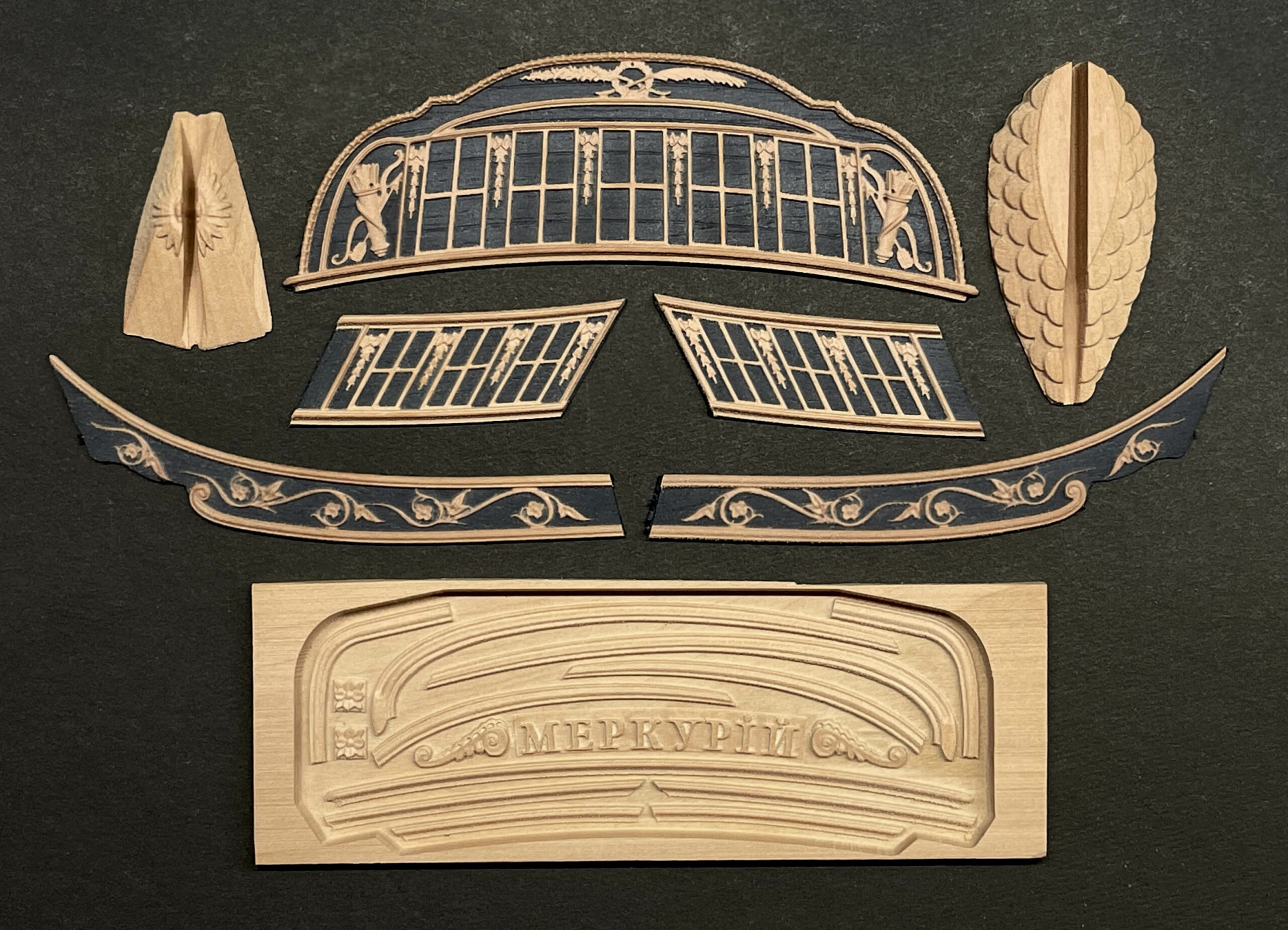 В набор включен полный комплект высокодетализированного резного деревянного декора производства Woodenship.