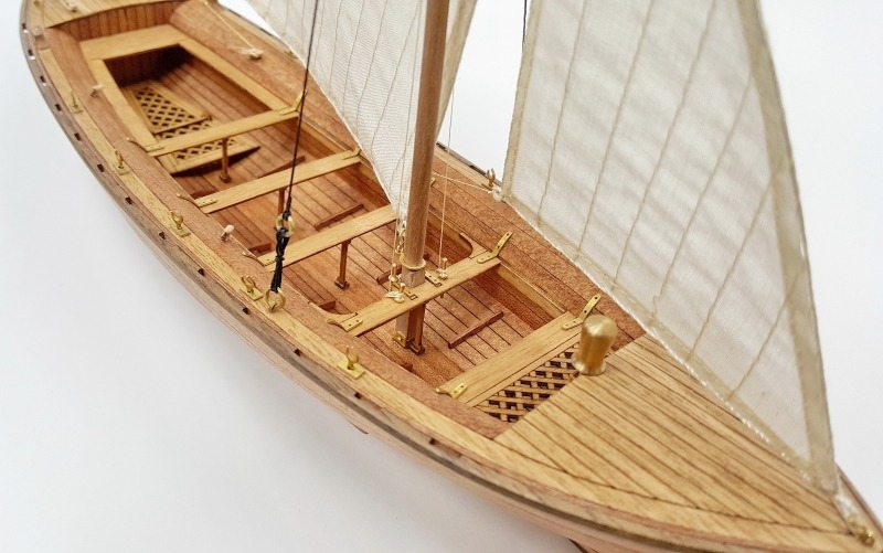Ткань для парусов, элементы деталей для сборки модели из благородных пород дерева, металлические детали из латуни выполненные методом фототравления, точеные нагели из латуни, подробная пошаговая фотоинструкция.