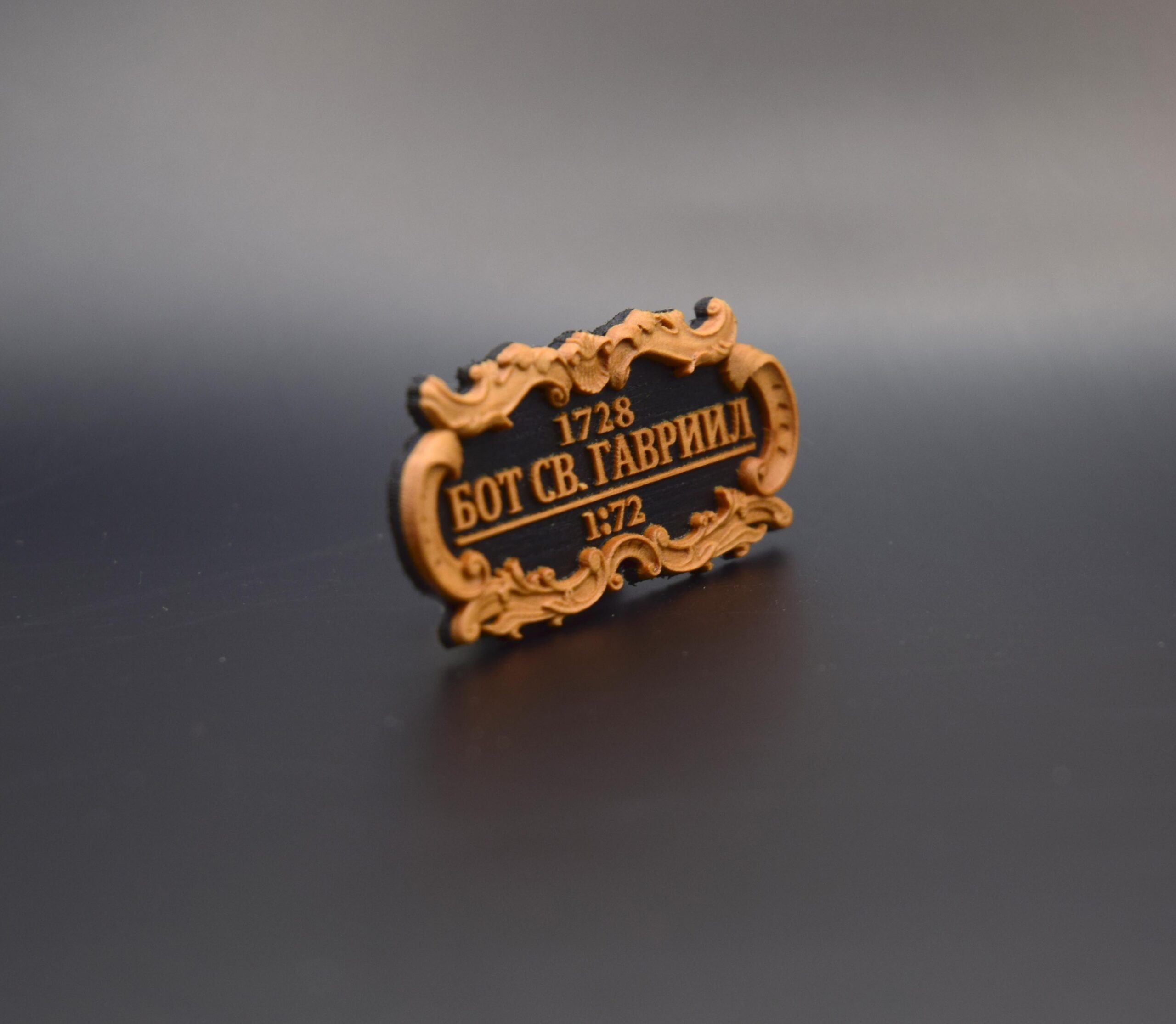 Табличка «Бот «Святой Гавриил» 55х25мм Черная.