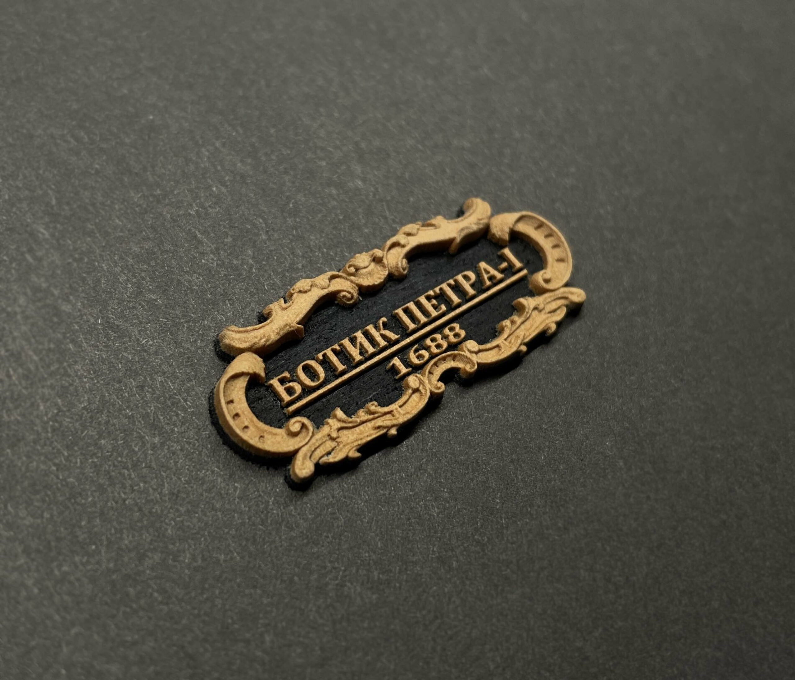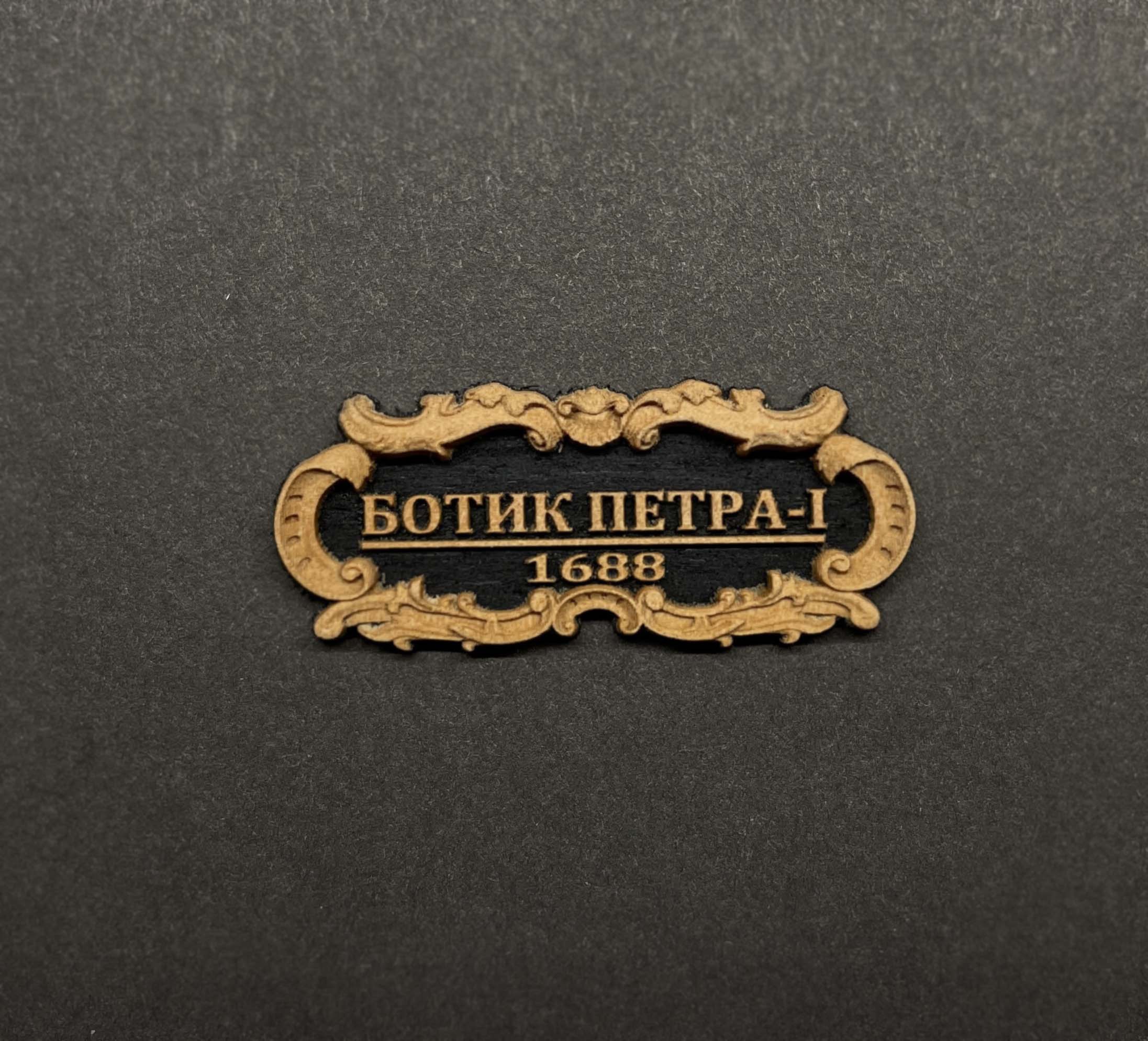 Главная страница » Магазин » Табличка “Ботик Петра-I” 40х17мм Черная.