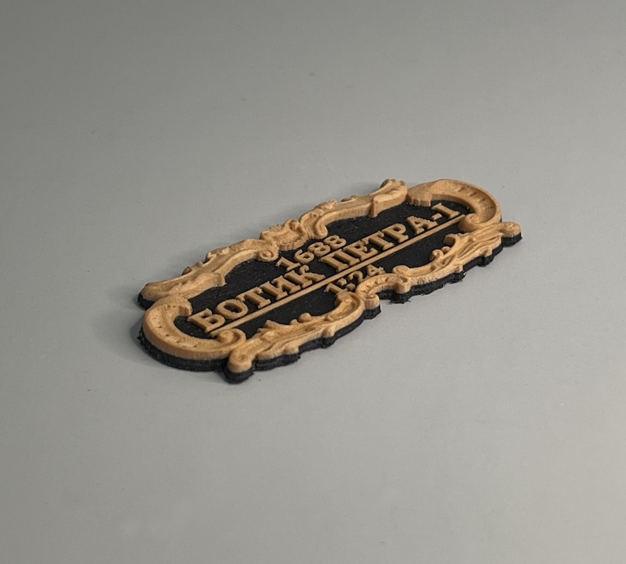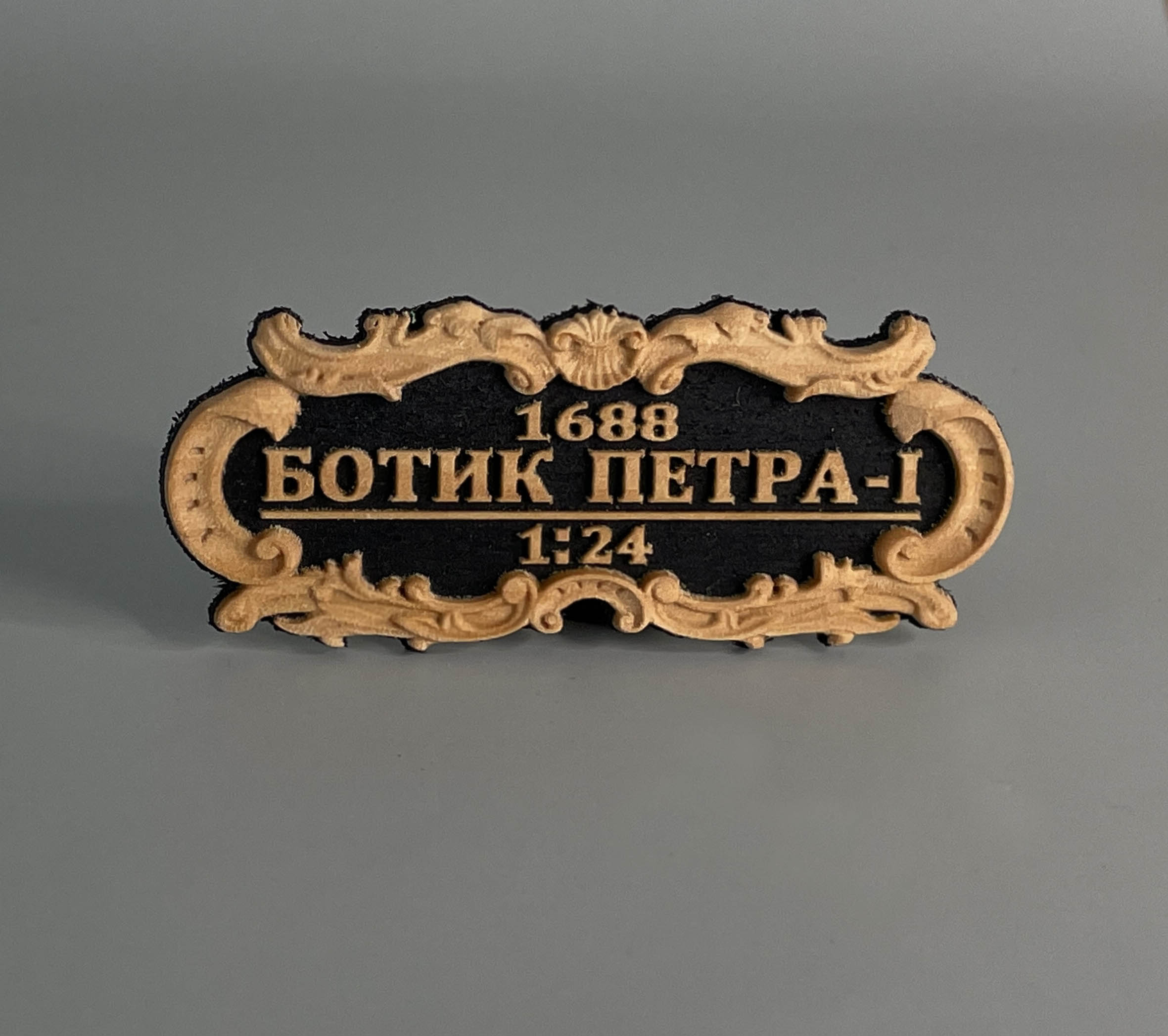 Главная страница » Магазин » Табличка “Ботик Петра-I”1:24 55х25мм Черная.
