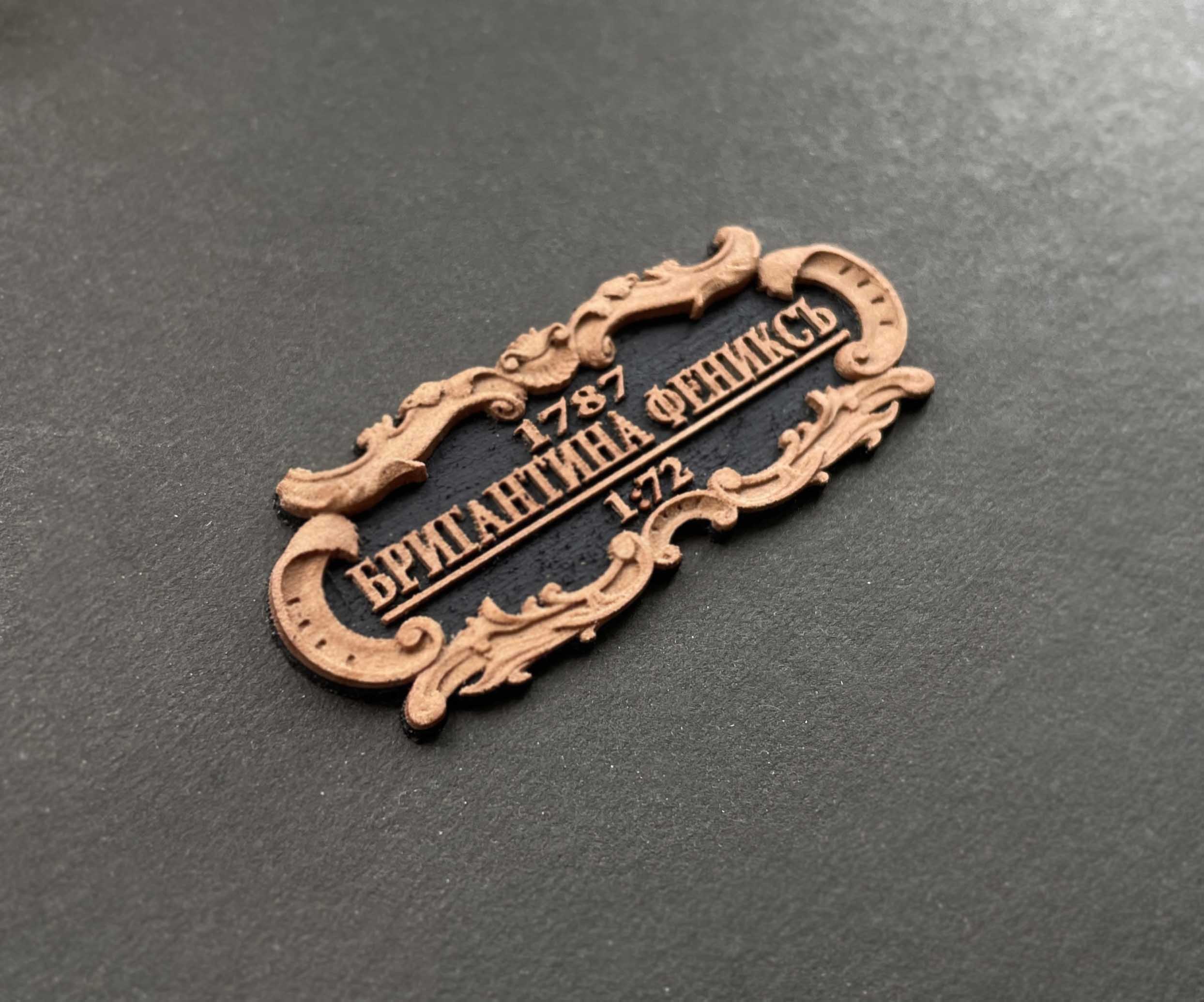 Табличка «Бригантина «Феникс» 55х25мм. Черная.