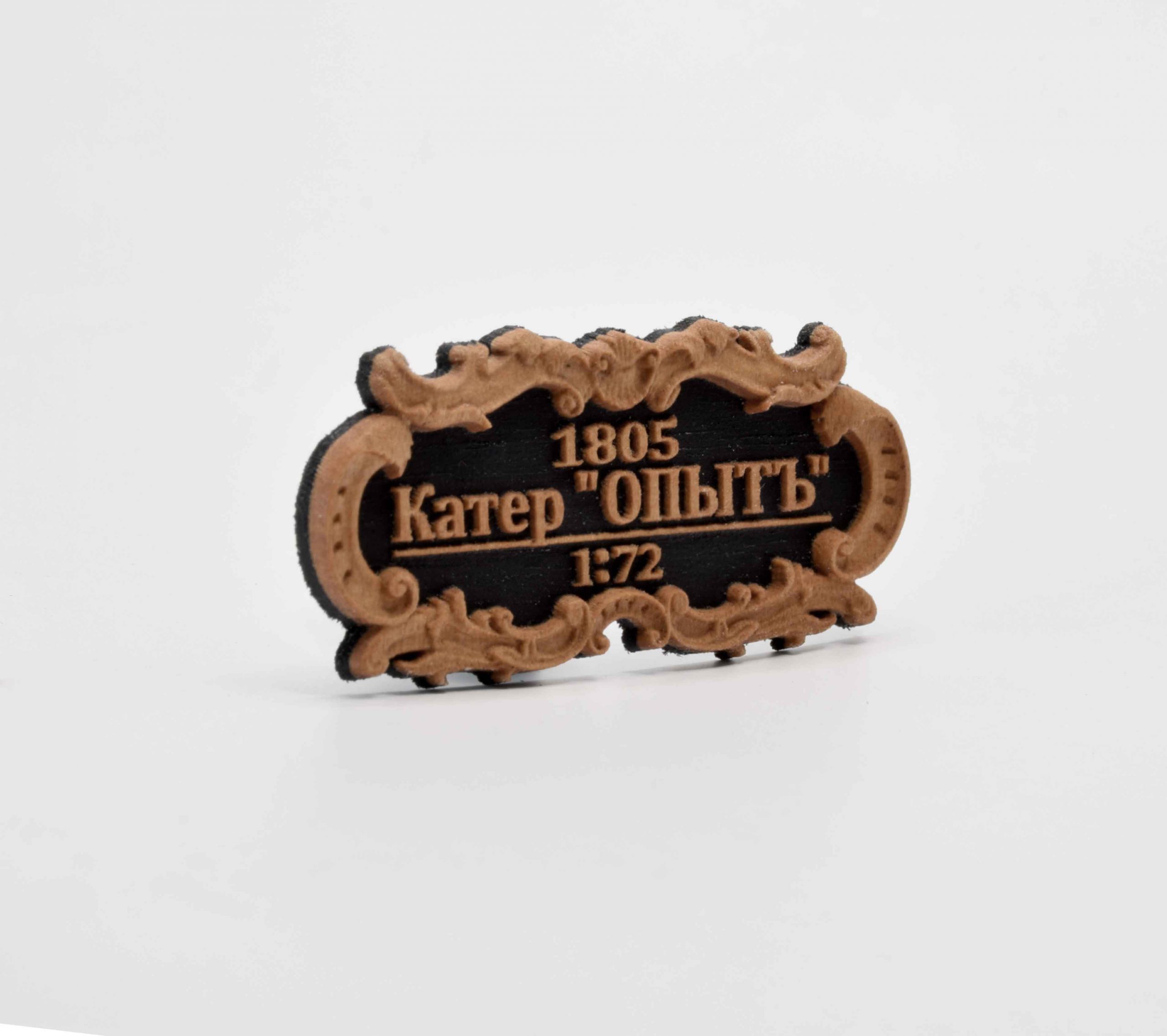 Табличка с названием модели из дерева, для сборной модели корабля «Катер»ОПЫТ» от компании «Эскадра»