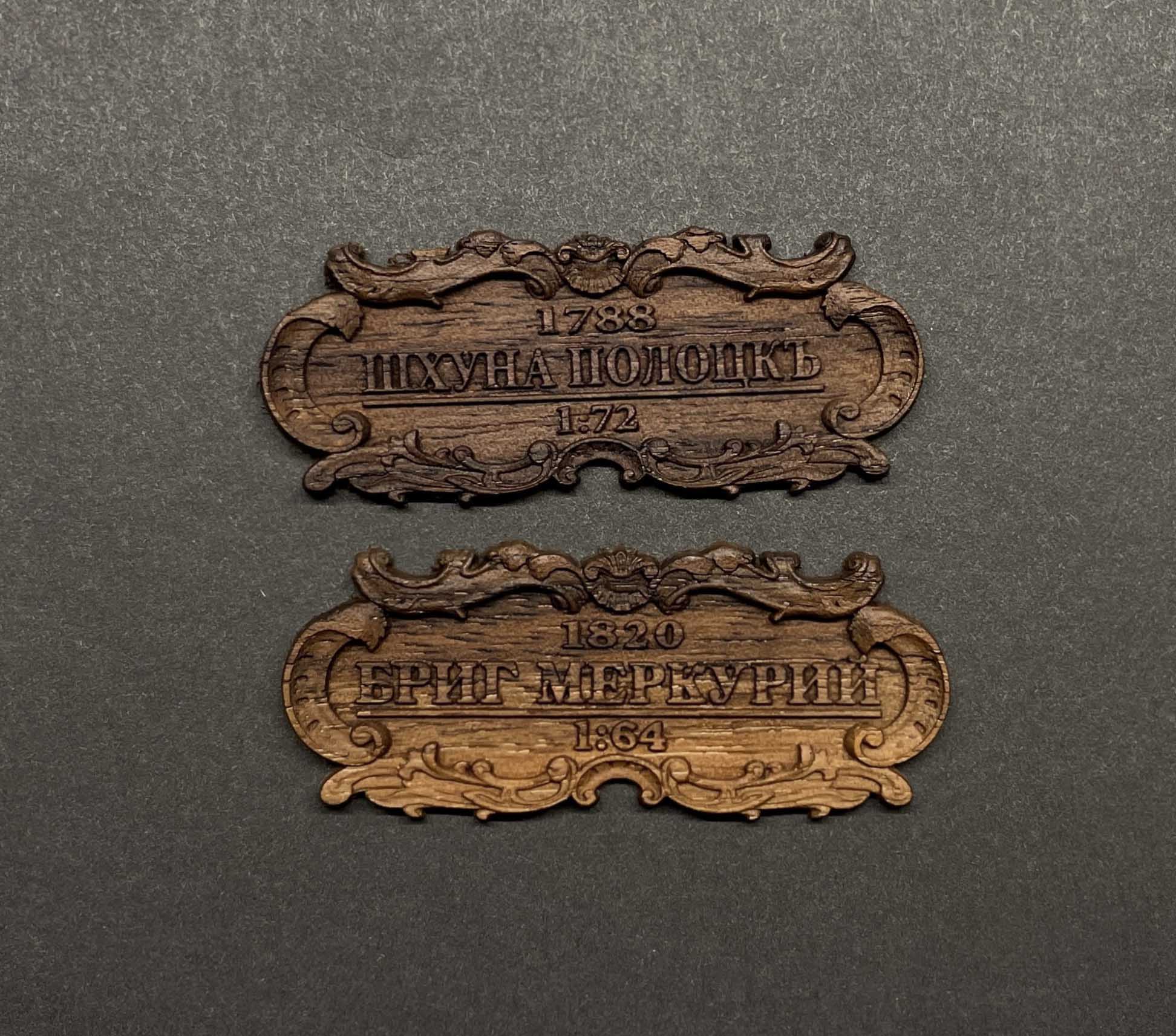 Табличка «Ботик Петра-I»1:24 55х25мм Черная.